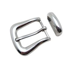 25mm Luxury Metal Zinc Alloy Polish Nickel Electroplated Pin Belt Buckle With Loop Buckle For Small Size Belt Buckle Set